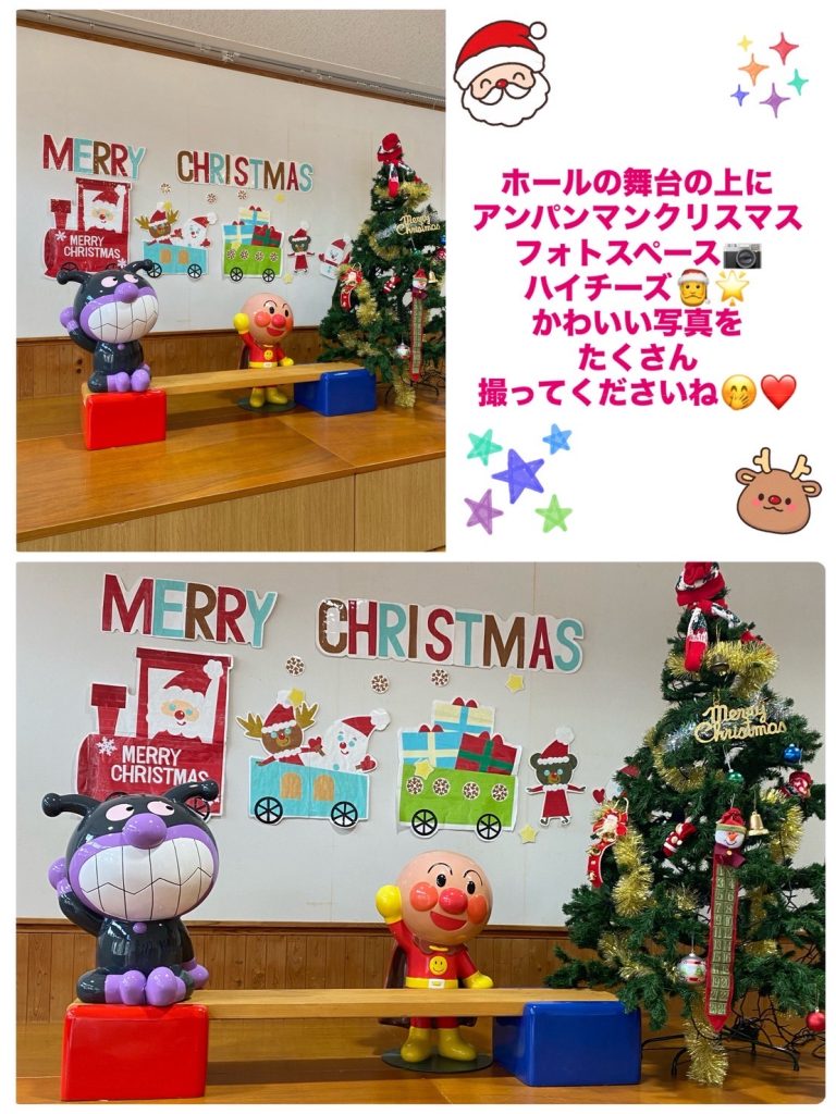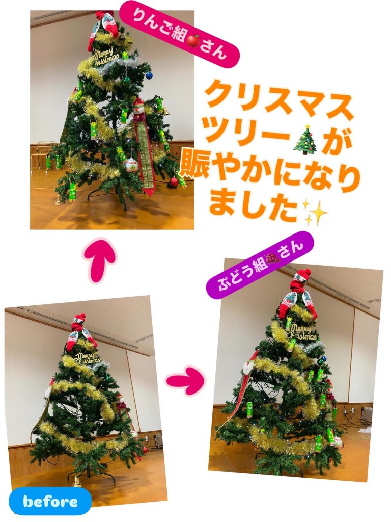 幼稚園のホールにクリスマスツリーやサンタさん🎅そして楽しいクリスマスミュージック🎶