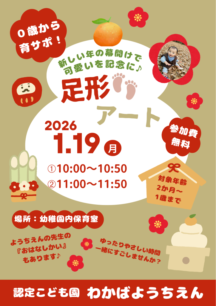 次回の赤ちゃんイベントは…1月19日(月)足形アート👣