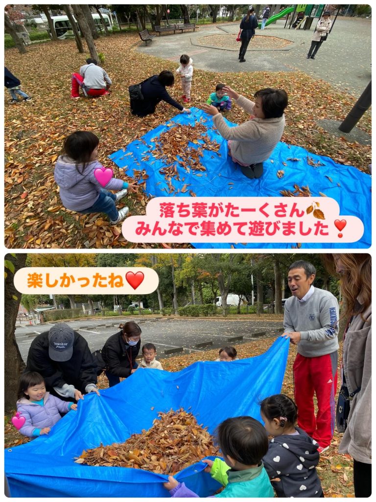 公園では落ち葉🍂をた〜っくさん集めて遊びました✨