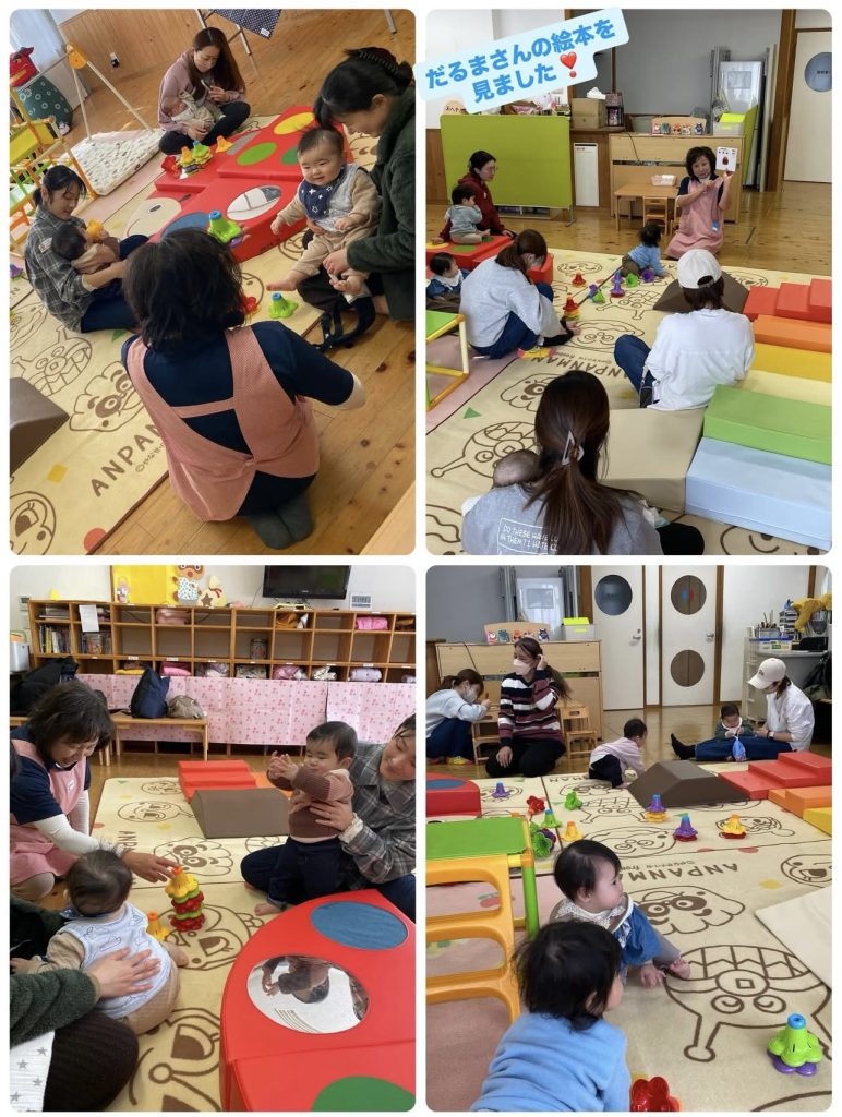 お友だちはたくさんハイハイしたりゴロゴロしたり、、最後には先生からの読み聞かせ🩷だるまさんの絵本を楽しみました♫